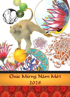 Vietnamese New Year 2028 Monkey Floral Abstract Art Design