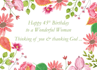 45th Birthday Wonderful Woman Watercolor Flowers Religious