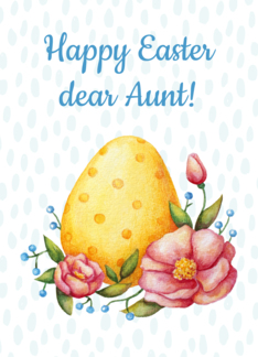 Easter watercolor card for Aunt with Egg and flowers.