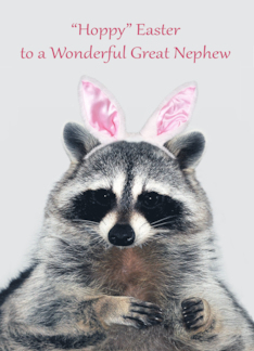 Easter to Great Nephew with an Adorable Raccoon Wearing Bunny Ears