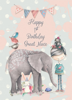 Happy 1st Birthday Great Niece Cute Girl with Animal Friends