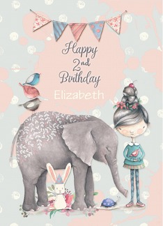 Happy Birthday 2nd Birthday Custom Name Cute Girl with Animal Friends