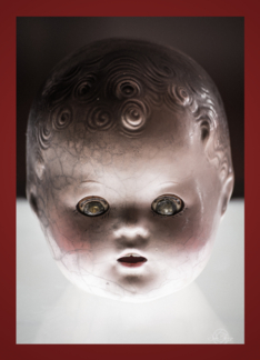 Freaky floating head Billy doll any occasion blank note
