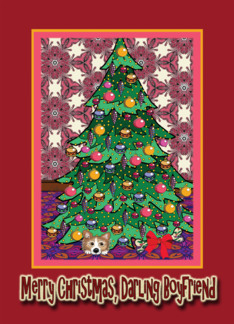 Merry Christmas Boyfriend, Corgi under a Christmas tree