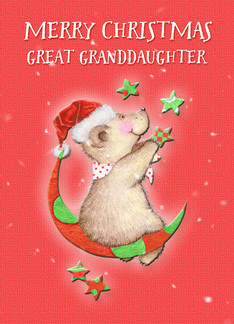 Merry Christmas to Great Granddaughter Adorable Teddy Bear Moon