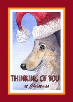 Thinking of you at Christmas, Sheltie in a Santa hat