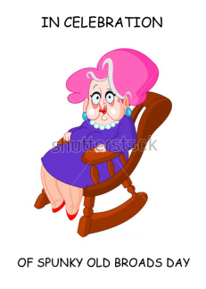 Spunky Old Broads Day, February 1st, Cartoon Lady with Pink Hair.