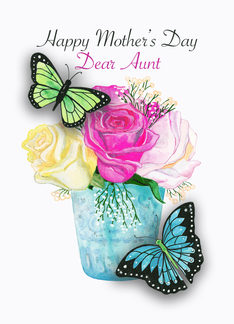 Mother's Day for Dear Aunt with Butterflies and Roses on White