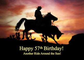 57th Happy Birthday Western with Horse and Cowboy Ride Around the Sun