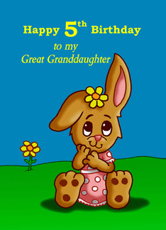 5th Birthday Card for Great Granddaughter with a Cute Bunny