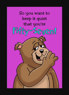 57th Birthday Card with Cartoon Bear Keep It Quiet