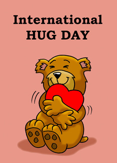 International Hugging or Hug day Card with a Cartoon Bear Hugging a Heart