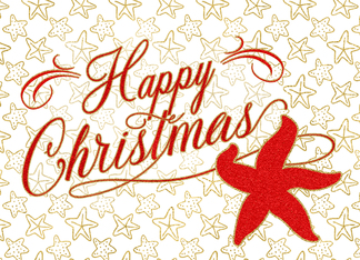 Happy Christmas Starfish Nautical Beach Theme in Red and Gold