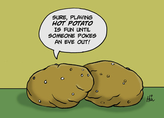 Blank Note Card With Cartoon Of Two Potatoes About Hot Potato Game