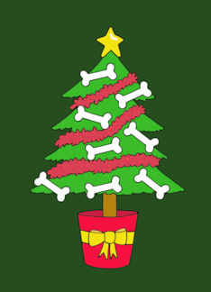 Happy Christmas to Dog Owner Cartoon Xmas Tree with Bone Decorations