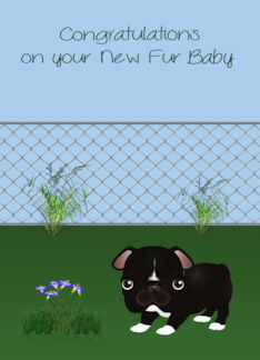 Congratulations On New Pet with a Black and White Bulldog in a Yard