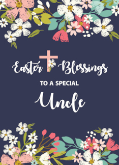 Uncle Easter Blessings of Risen Christ Flowers on Navy Blue