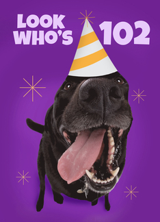 Happy 102nd Birthday Funny Dog in Party Hat Humor