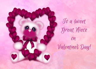 Valentine for a Great Niece, Pink Teddy Bear Holding a Heart