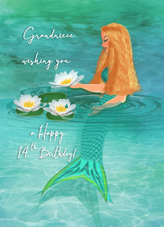 Happy 14th Birthday for Grandniece Mermaid Lilies, Watercolor