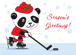 Season's Greetings for Ice Hockey Fan, Panda
