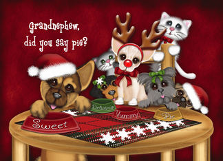 Christmas, For a Grandnephew, Puppies, kittens Waiting for Pie