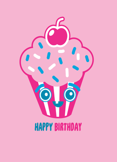Happy Birthday from a Cute Pink and Blue Cupcake