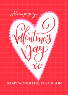 Foster Son Happy Valentines Day with Big Heart and Hand Lettering