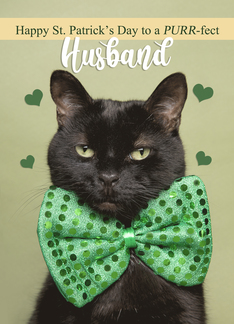 Happy St. Patrick's Day Husband Cute Black Cat in Green Bow Tie