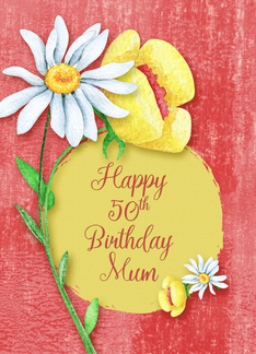 Happy 50th Birthday to Mum Pretty Watercolor Effect Flowers