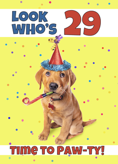 Happy 29th Birthday Cute Puppy in Party Hat Humor