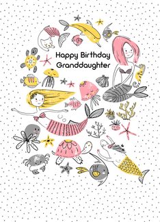 Happy Birthday to Granddaughter Mermaids with Under the Sea Life