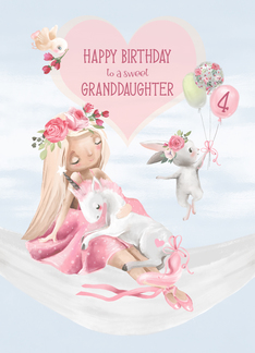 Happy 4th Birthday Granddaughter Ballerina, Unicorn, Rabbit