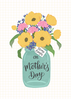 Cousin, Happy Mother's Day, Mason Jar, Flowers, Hand Lettering