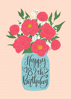 89th Birthday, Happy Birthday, Mason Jar, Flowers, Hand Lettering