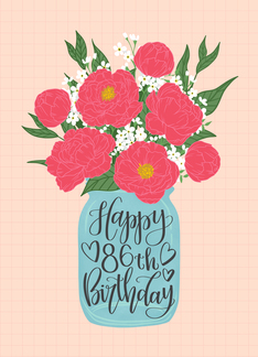 86th Birthday, Happy Birthday, Mason Jar, Flowers, Hand Lettering