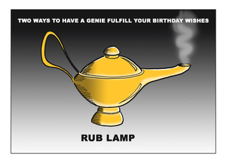 Humorous Birthday With Genie Lamp and Two Ways Get Wishes