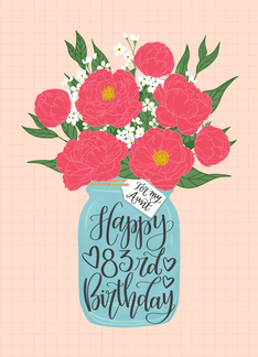 Aunt, 83rd, Happy Birthday, Mason Jar, Flowers, Hand Lettering