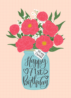 Friend, 71st, Happy Birthday, Mason Jar, Flowers, Hand Lettering