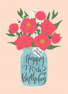 Godmom, 70th, Happy Birthday, Mason Jar, Flowers, Hand Lettering
