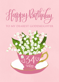 34th Birthday Goddaughter - Teacup with Lily of the Valley Flowers