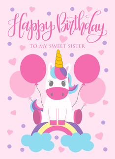 Birthday Sister Unicorn Sitting On Rainbow Surrounded By Balloons