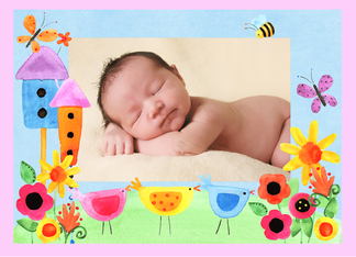 Whimsical Pastel Flower Garden Birth Announcement, Photo Insert