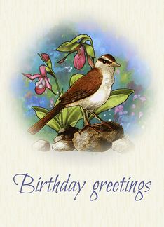 Birthday Greetings, General Happy Birthday, Sparrow and Ladyslippers