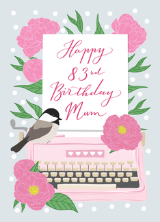 Mum Happy 83rd Birthday with Typewriter, Chickadee Bird & Flowers
