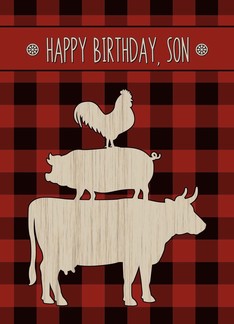 Birthday for Son with Red Buffalo Plaid and Farm Animals