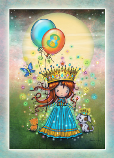 Eight Year Old Girls Birthday Card Little Princess with Balloons