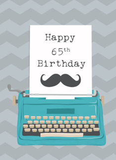 Happy 65th Birthday with Typewriter Moustache & Zig Zag Background