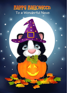 Custom Front Niece Happy Halloween Kitty Cat and Pumpkin