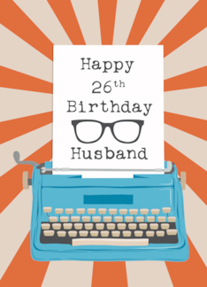 Husband Happy 26th Birthday Typewriter Glasses Silhouette Sunburst